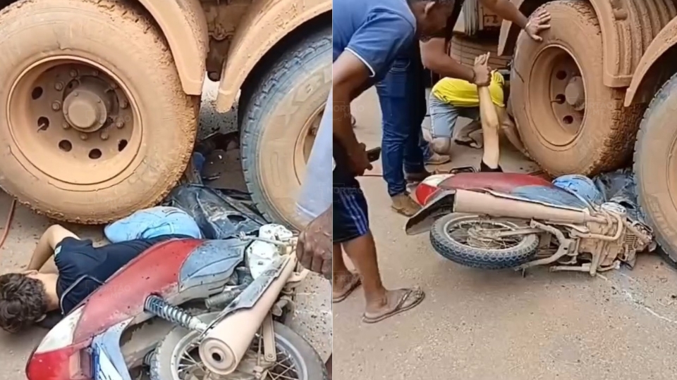 Com o impacto, o motociclista foi parar debaixo do veículo, ficando preso sob as rodas do primeiro compartimento. Populares que passavam pelo local agiram rapidamente, utilizando ferramentas emprestadas de uma borracharia próxima para erguer parte da estrutura e retirar a vítima.