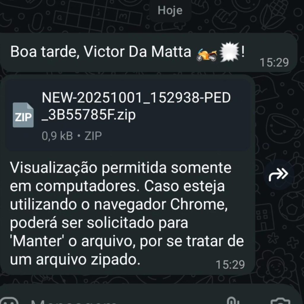 Moradores de diversas cidades do Nortão foram surpreendidos, nesta quarta-feira (1º), por um novo golpe cibernético que vem circulando pelo WhatsApp. Um arquivo malicioso no formato “.ZIP” está sendo disseminado em grupos e conversas, resultando na clonagem de celulares, computadores e contas pessoais em redes sociais.