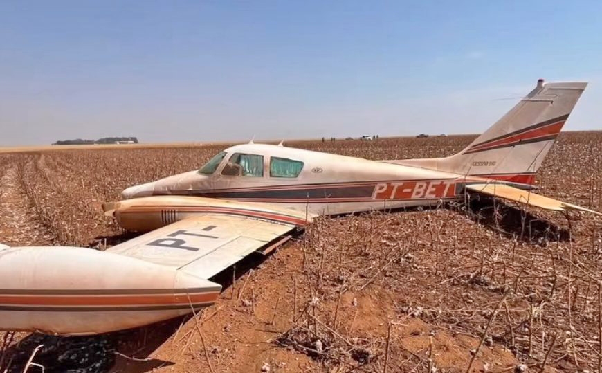 Um avião de pequeno porte precisou realizar um pouso forçado em uma área rural próxima à rodovia estadual MT-486, em Primavera do Leste (234 km de Cuiabá), na tarde desta sexta-feira (12).