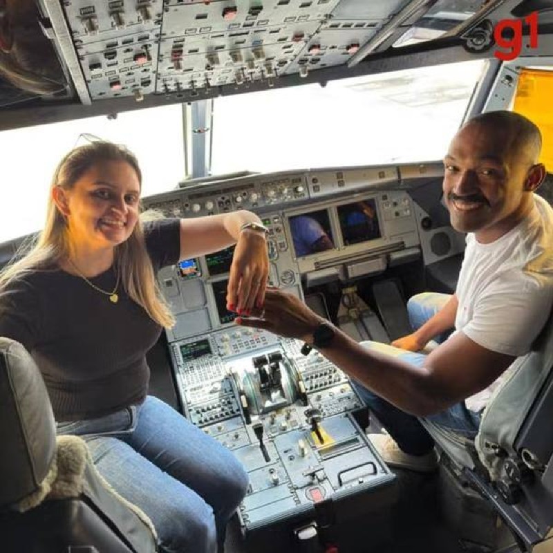 “Ela até estranhou, porque sabe que estou acostumado com voos. Mas eu estava nervoso, e não por estar no avião, era pelo pedido”, relembrou ele. Alguns familiares de Deborah, que também estavam no voo, acompanharam de perto o momento especial.