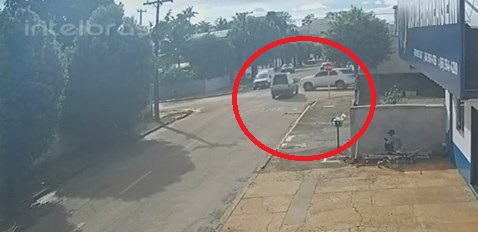 Imagens de câmera de segurança mostram o momento em que a Fiat Strada entra na via e, poucos segundos depois, ocorre a colisão com a Hilux SW4 que trafegava pelo local.