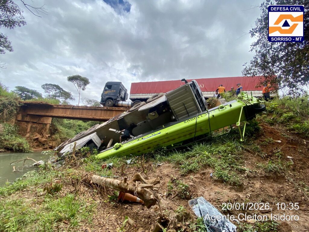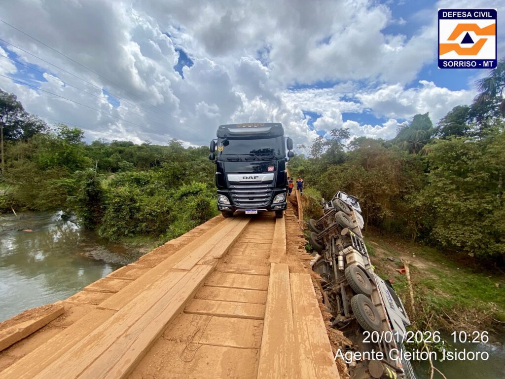 A Prefeitura de Sorriso informou que uma equipe da Defesa Civil foi acionada e esteve no local para avaliar os danos na ponte e verificar a necessidade de interdição do trecho, visando garantir a segurança dos motoristas que trafegam pela região.