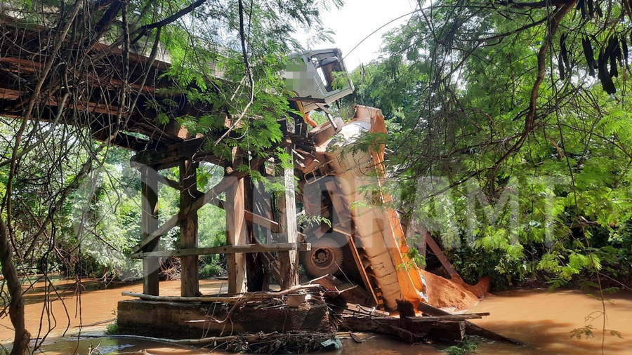 Um homem de 58 anos ficou ferido no início da tarde desta terça-feira (13) depois que o caminhão que conduzia, carregado com cascalho, caiu em um rio ao tentar atravessar uma ponte de madeira, em Rondonópolis, a 219 km de Cuiabá. A estrutura não suportou o peso do veículo e cedeu completamente no trecho central.