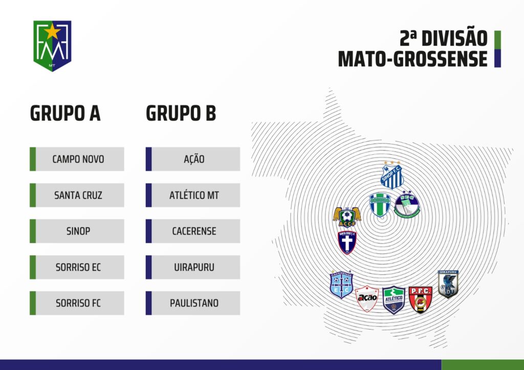 Na primeira fase, os times serão divididos em dois grupos regionalizados. No Grupo A estão Campo Novo, Santa Cruz, Sinop e as duas equipes de Sorriso. Já o Grupo B será formado por Atlético MT, Ação, Paulistano, Uirapuru e Cacerense.