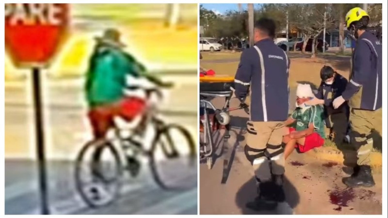 Um ciclista foi atropelado na faixa de pedestre em Sinop. Imagens de câmeras de segurança registraram o momento do acidente no cruzamento das ruas Tarumãs com Primaveras, no bairro Jardim Botânico, na tarde desta quarta-feira (18).