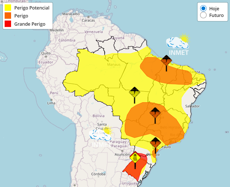 A previsão indica a ocorrência de tempestades acompanhadas de ventos que podem chegar a 100 km/h, além de chuva intensa, descargas elétricas e possibilidade de queda de granizo. Segundo o Inmet, o ciclone contribui para a intensificação da frente fria e da Zona de Convergência do Atlântico Sul, favorecendo a formação de pancadas fortes e aumentando o risco de alagamentos em várias regiões.