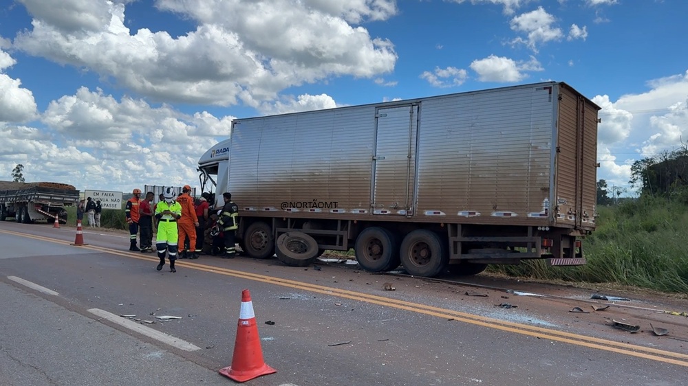 A Nova Rota do Oeste foi acionada às 12h13 para atender uma grave ocorrência no km 739 da BR-163, em Sorriso, envolvendo dois veículos de carga.