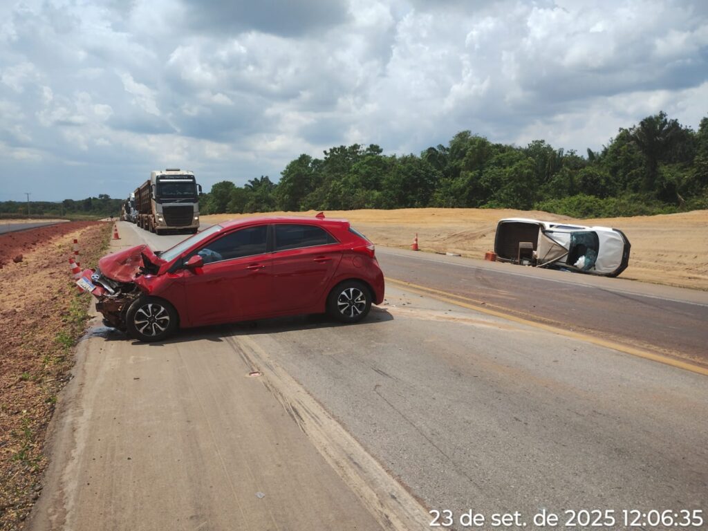 Uma colisão lateral envolvendo um Hyundai HB20 e uma Fiat Strada foi registrada no início da tarde desta terça-feira (23), no km 796 da BR-163, em Sorriso.