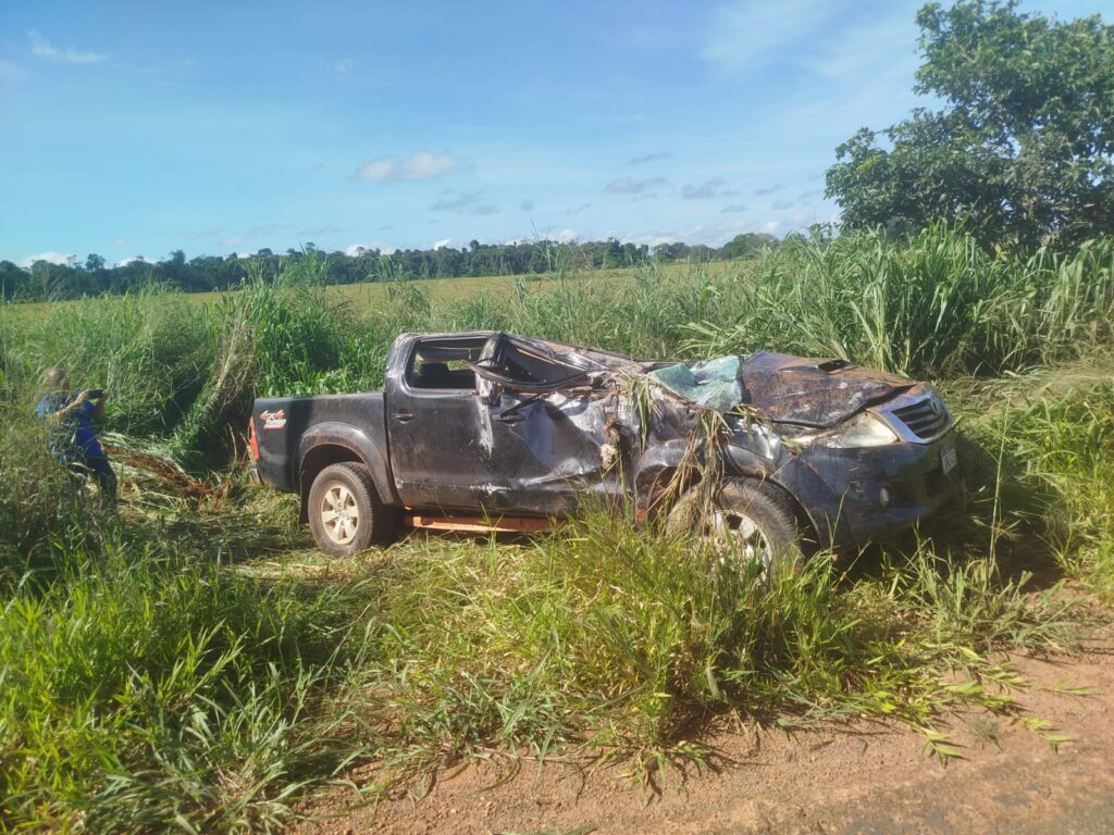 Ao chegarem ao local, os policiais encontraram uma caminhonete Toyota Hilux preta envolvida na colisão. O médico plantonista, Dr. Sérgio Henrique, já estava na cena e confirmou o óbito dos dois ocupantes do veículo.