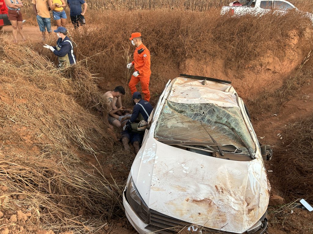 Dois homens ficaram feridos após um capotamento registrado na tarde deste domingo (20), por volta das 17h, na Linha Celeste, região rural do município de Sorriso. O acidente mobilizou o Corpo de Bombeiros e a Polícia Militar.