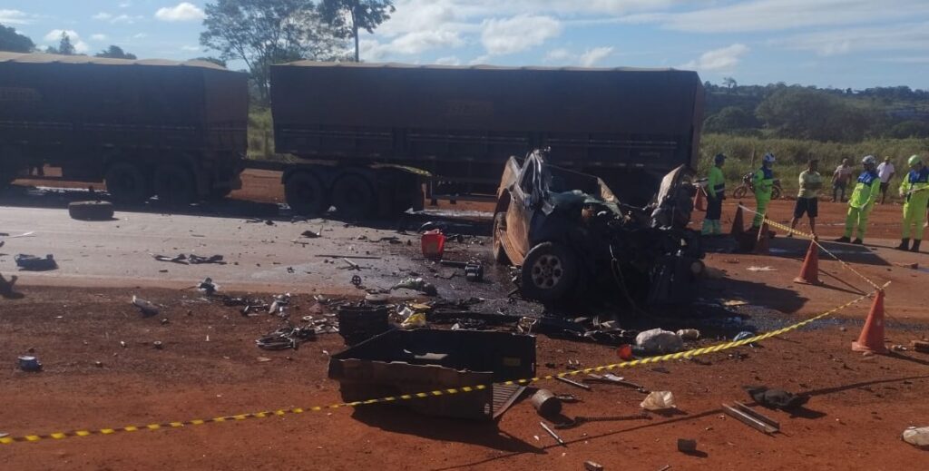 O acidente envolveu ainda um caminhão Volvo FH540. Conforme relato do motorista no boletim de ocorrência, ele seguia em direção a Nova Santa Helena quando a caminhonete, que trafegava no sentido oposto, teria invadido a pista contrária em alta velocidade. O condutor do caminhão afirmou que tentou desviar, saindo parcialmente da via, mas não conseguiu evitar a colisão frontal, que destruiu grande parte da cabine da S10.