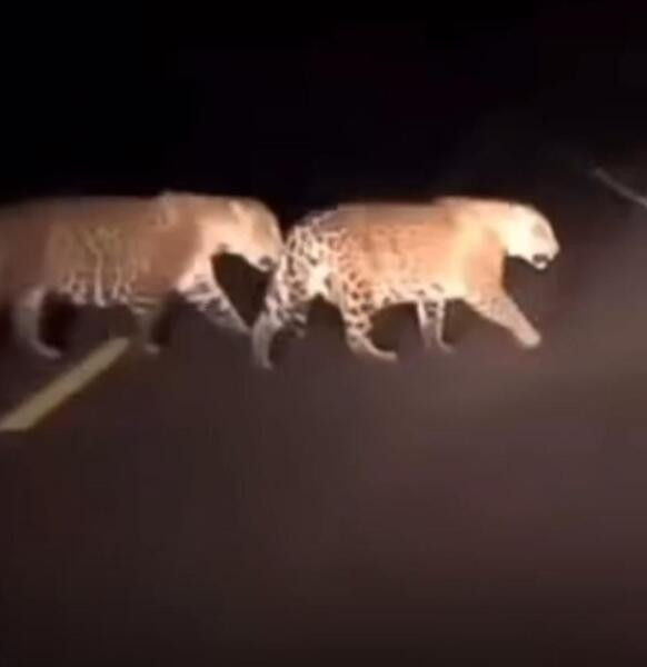Um registro impressionante compartilhado na noite desta quinta-feira (31) mostra duas onças-pintadas atravessando calmamente uma estrada na zona rural de Rondonópolis (a 216 km de Cuiabá)), na região do distrito de Nova Galileia. O flagrante foi gravado por moradores e rapidamente se espalhou pelas redes sociais.