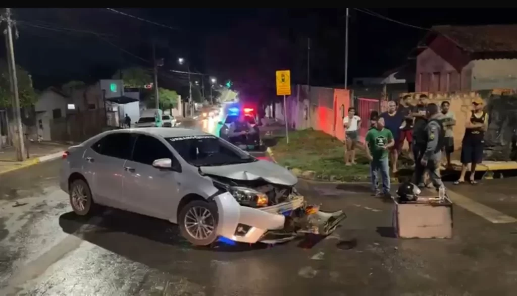 Um entregador de 19 anos ficou ferido após um acidente de trânsito registrado na noite de sexta-feira (26), no cruzamento das ruas Iguaçu e Rio Negro, no bairro Nova Aliança, zona leste da cidade. A colisão envolveu uma motocicleta de entrega e um Toyota Corolla.