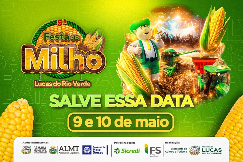 Um dos eventos mais tradicionais da região, a Festa do Milho, já começa a ganhar destaque em Lucas do Rio Verde. A 5ª edição será realizada nos dias 9 e 10 de maio, com entrada gratuita e uma programação voltada para toda a família, reunindo música, gastronomia e cultura local.