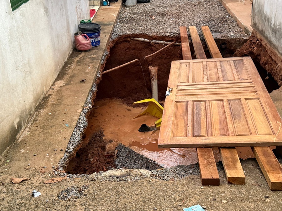 Um desabamento de fossa ocorrido na tarde desta terça-feira (24) quase resultou em uma tragédia no bairro São José, em Sorriso (MT). O incidente comprometeu a estrutura de um conjunto de kitnets onde residiam três famílias, obrigando a intervenção da Defesa Civil e a interdição imediata do local.