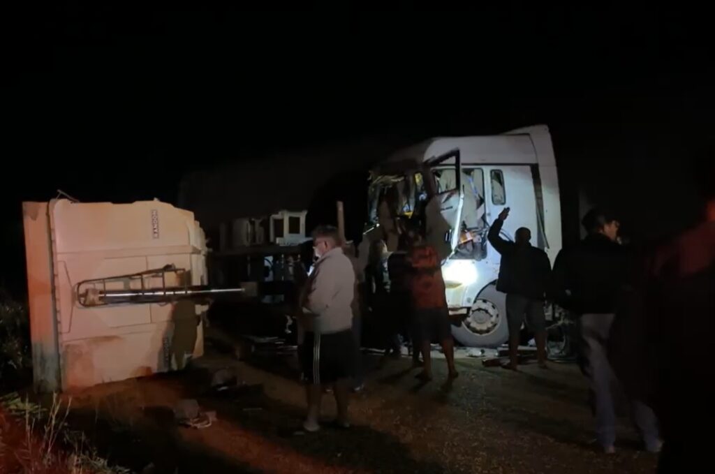 De acordo com informações apuradas no local, o acidente teve início quando uma carreta carregada com milho tombou e atingiu violentamente a cabine de outra carreta que seguia no sentido contrário. O impacto foi tão intenso que o motorista ficou preso às ferragens, exigindo um trabalho técnico e minucioso da equipe de resgate para sua retirada em segurança.