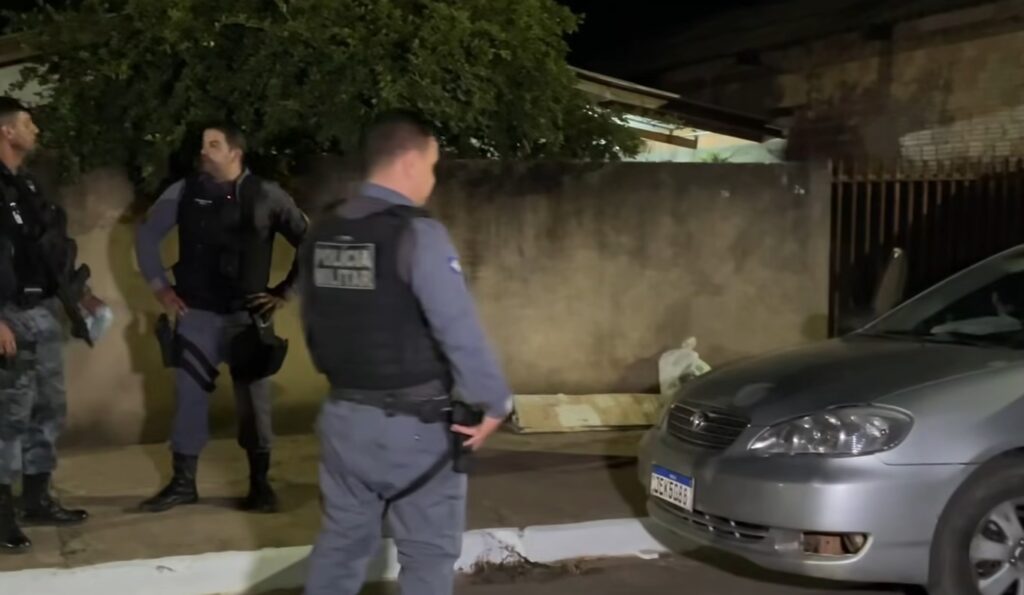Minutos depois, os agentes localizaram um veículo abandonado nas proximidades com características semelhantes ao usado no crime. A porta traseira estava aberta, o motor ainda quente e, no interior, foram encontrados uma bala crava preta, uma munição calibre .40, um celular Samsung e uma identidade masculina.