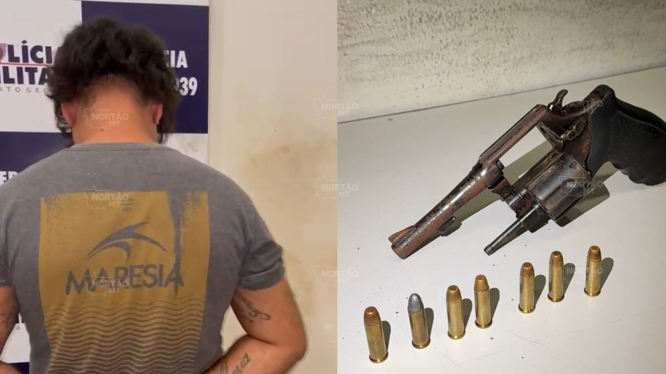 O suspeito foi encaminhado à Delegacia de Polícia Civil para as providências cabíveis. O revólver e as munições foram apreendidos.