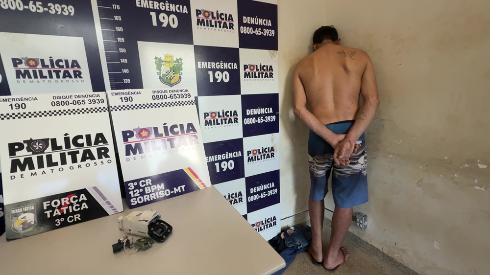 A câmera danificada foi recuperada, assim como as roupas utilizadas pelos suspeitos no momento da ação. O detido foi encaminhado à delegacia e permanece à disposição da Justiça.