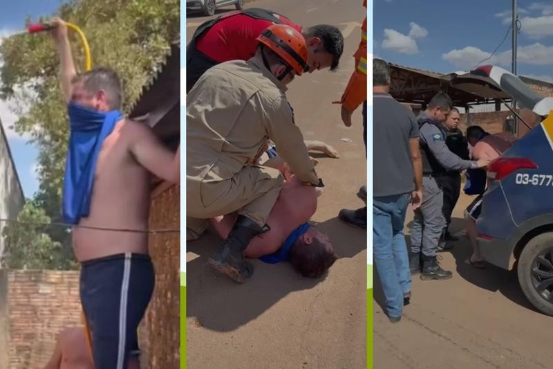 O momento da prisão foi registrado por moradores e circulou nas redes sociais. Nas imagens, uma mulher questiona a necessidade da detenção e critica a atuação dos bombeiros, afirmando que o homem tentava apagar o fogo sozinho antes da chegada da equipe.