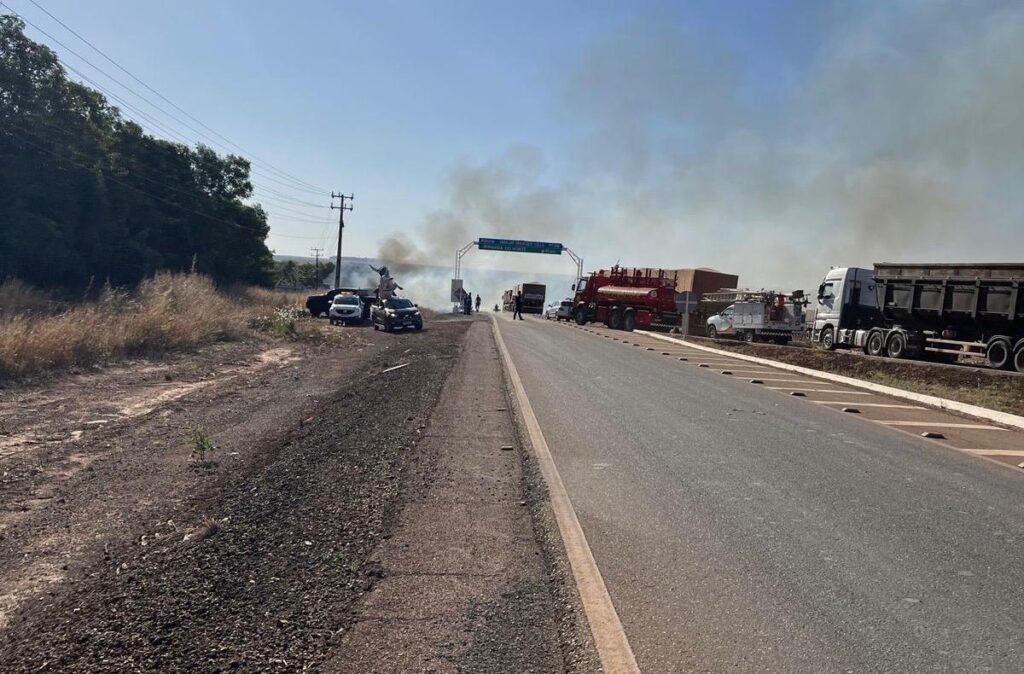 Na tarde desta terça-feira, por volta das 15h30, um incêndio de grandes proporções mobilizou a guarnição de serviço do 5º Batalhão do Corpo de Bombeiros, que foi acionada para atender a uma ocorrência na MT-242, próximo ao pedágio que conecta Sorriso a Ipiranga do Norte.