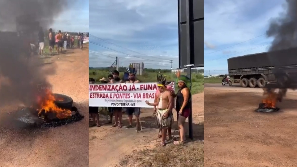 Um grupo de indígenas da etnia Terena realiza, nesta quarta-feira (1º), uma manifestação às margens da BR-163, entre Matupá e Peixoto de Azevedo, no norte de Mato Grosso.