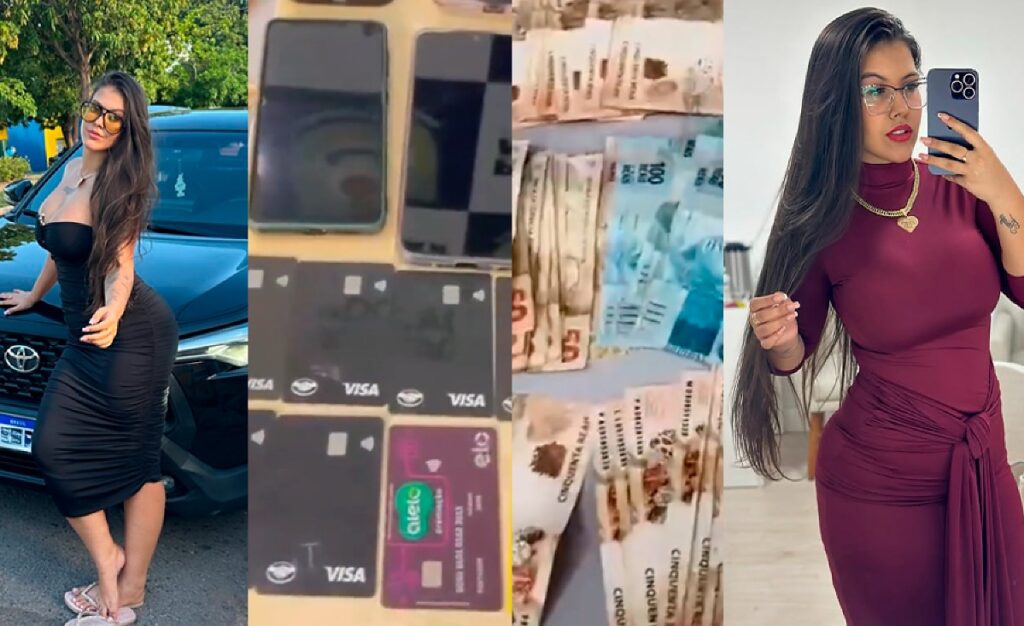 Ao chegar ao local, os policiais identificaram o veículo suspeito e abordaram a motorista, que era a influenciadora. Simultaneamente, outra equipe conseguiu deter o homem que deixava o estabelecimento após efetuar os saques.