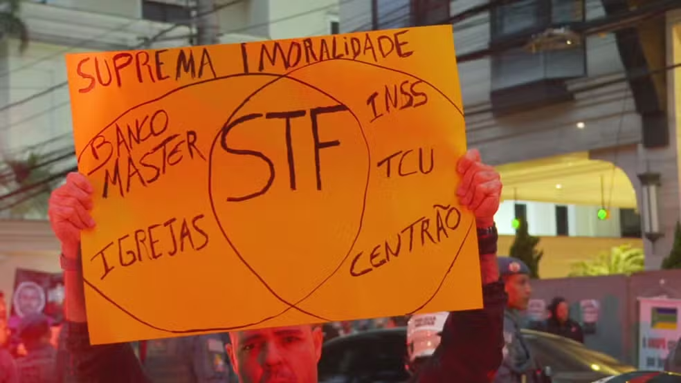 Durante o ato, os manifestantes gritaram: “Ei Vorcaro, cadê a delação?”.