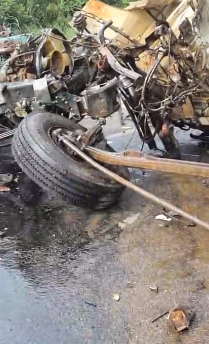 Com a força da batida, os veículos ficaram completamente destruídos. Destroços se espalharam pela pista e uma grande quantidade de óleo foi derramada na rodovia, aumentando o risco de novos acidentes e exigindo atenção redobrada de quem passava pelo local.