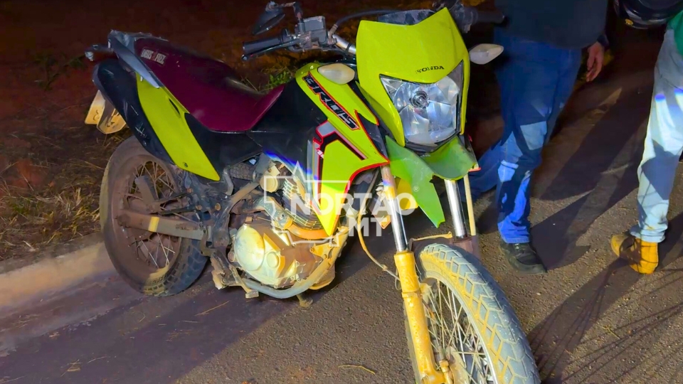 Um motociclista ficou ferido na noite desta quinta-feira (26) após colidir com um monte de britas que havia sido deixado sobre a pista de rolamento na Rua Dr. Ari Luís Brandão, no bairro Industrial Nova Prata, em Sorriso.