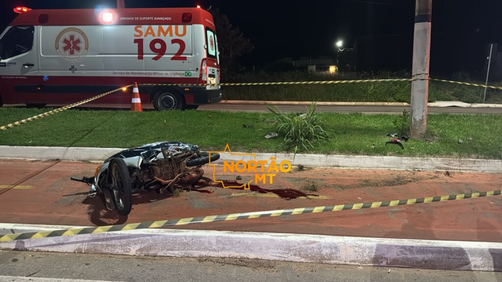 Um grave acidente de trânsito foi registrado na noite desta quinta-feira (25), no bairro Jardim Paraíso, em Sorriso. O Serviço de Atendimento Móvel de Urgência (SAMU) foi acionado, mas ao chegar ao local constatou que o condutor da motocicleta já estava em óbito.
