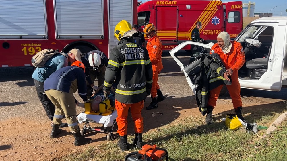 De acordo com as informações, duas viaturas de resgate foram acionadas após relatos de que uma das vítimas estava presa às ferragens. A equipe de salvamento precisou arrombar a porta do caminhão para retirar o motorista, que apresentava escoriações na mão e queixava-se de fortes dores no peito e nas costas. Ele foi imobilizado e encaminhado a uma unidade hospitalar para exames e avaliação de possíveis lesões internas.
