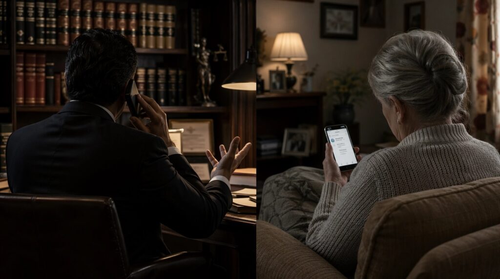 O golpe só foi descoberto após a vítima entrar em contato com sua advogada verdadeira, que confirmou que não havia qualquer cobrança ou necessidade de pagamento.