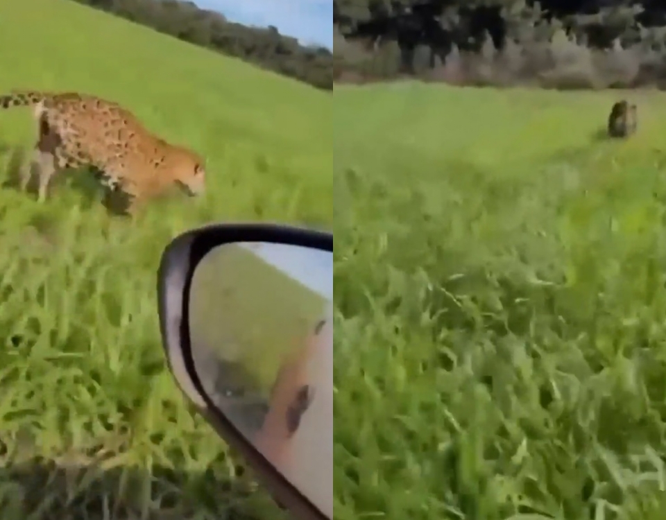 Um vídeo que mostra uma onça-pintada correndo ao lado de um carro em uma lavoura de Campo Novo do Parecis viralizou nas redes sociais nesta quarta-feira (29). O registro teria sido feito na terça-feira (28), quando o produtor rural Valdecir Baggio retornava para casa.