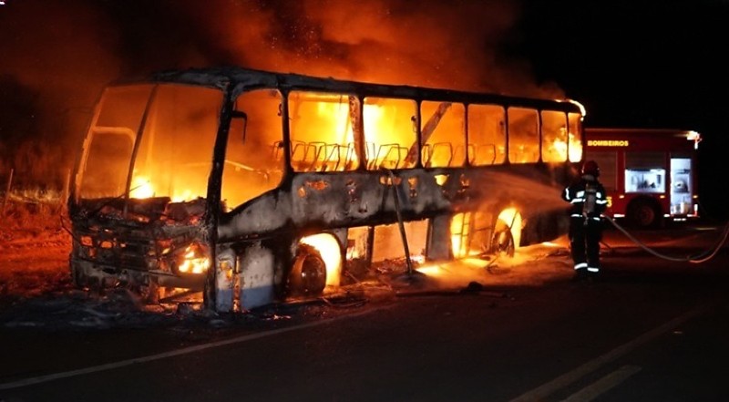 Um incêndio de grandes proporções destruiu completamente um ônibus de transporte intermunicipal na noite deste domingo (19), na MT-270, por volta do km 325, a cerca de 15 quilômetros de Rondonópolis. O veículo estava nas proximidades da entrada do assentamento Banco da Terra, em uma área rural do município.De acordo com o Corpo de Bombeiros, quando a equipe chegou ao local, o coletivo já estava tomado pelas chamas.