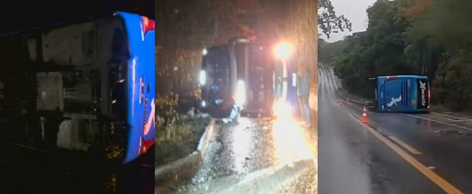 De acordo com informações preliminares, o motorista teria tentado desviar de uma árvore caída na pista durante uma forte chuva, mas acabou perdendo o controle da direção. O ônibus tombou em um trecho de descida da rodovia.
