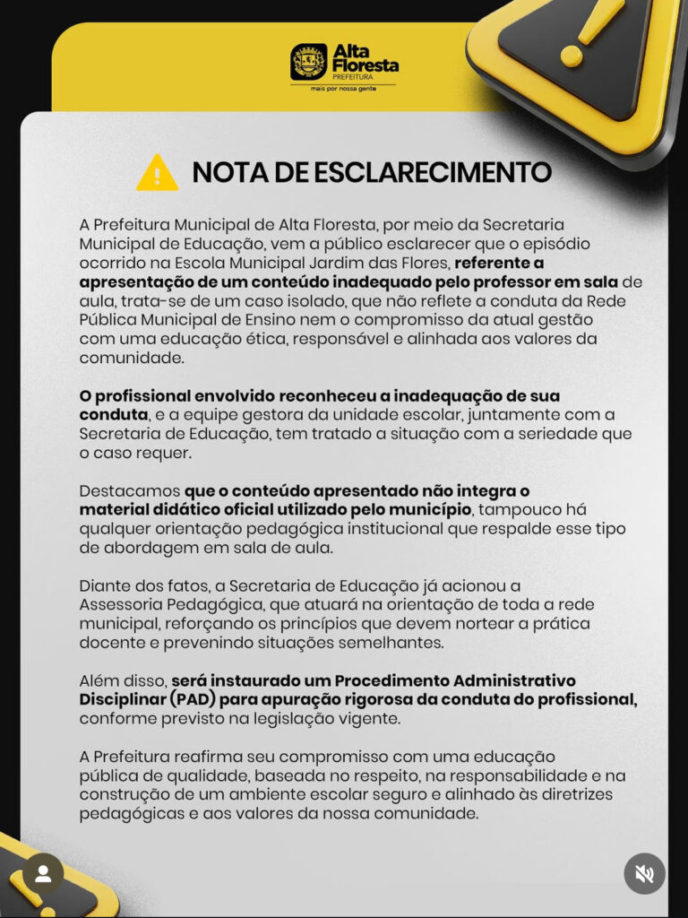 A Prefeitura de Alta Floresta se pronunciou após repercussão: