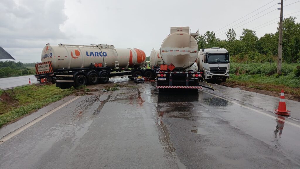 A pista sul da BR-364 (sentido Cuiabá) foi totalmente liberada às 16h55 desta sexta-feira (28), após permanecer bloqueada por mais de duas horas devido à colisão transversal envolvendo duas carretas tanque carregadas com óleo diesel. O acidente ocorreu às 14h23 no km 550, em Rosário Oeste/MT.