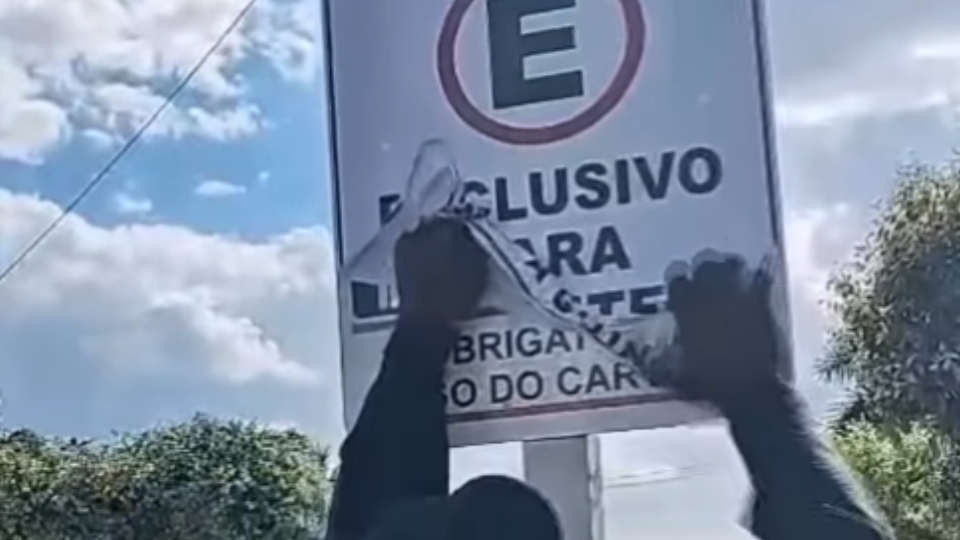 A Guarda Municipal foi acionada por populares e, ao chegar ao local, constatou a adulteração. Em um vídeo divulgado nas redes sociais, é possível ver os agentes removendo o adesivo e restaurando a sinalização original da vaga especial.