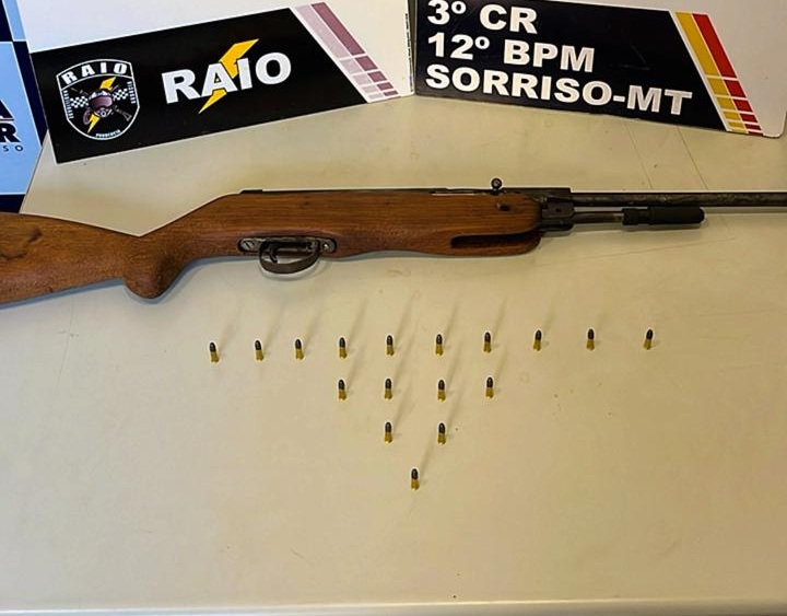 Durante a verificação, os militares encontraram um rifle calibre .22 e 17 munições intactas na residência. O suspeito, que havia agredido a esposa, foi detido no local.