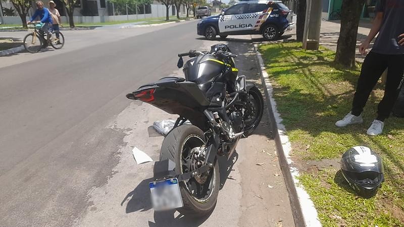 Por volta das 11h30, durante patrulhamento pela Avenida Uirapurus, no bairro Jardim 2, a equipe policial identificou um homem conduzindo uma Yamaha MT-03 em velocidade acima do permitido. A conduta colocava em risco pedestres, pais e alunos que circulavam pela região da Escola Lúcia Faccio, onde o fluxo de pessoas é intenso no horário.