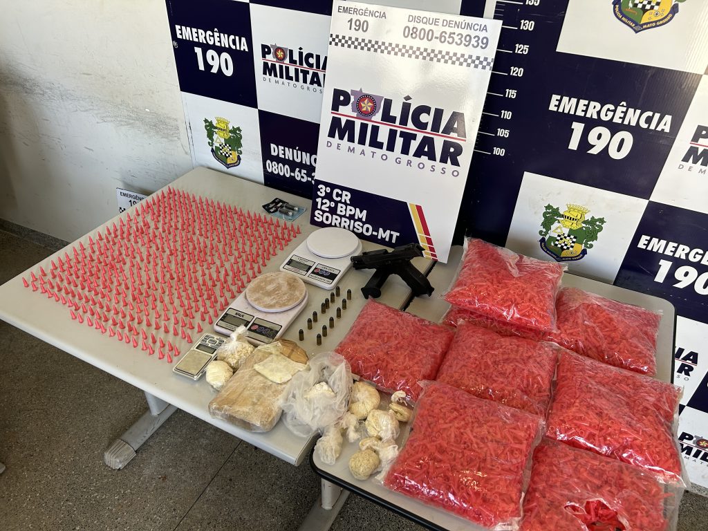 Nas buscas realizadas na propriedade, os militares apreenderam grande quantidade de cocaína e cloridrato de cocaína, além de uma arma de fogo calibre .40. O armamento foi encontrado escondido em uma área de mata próxima à chácara.