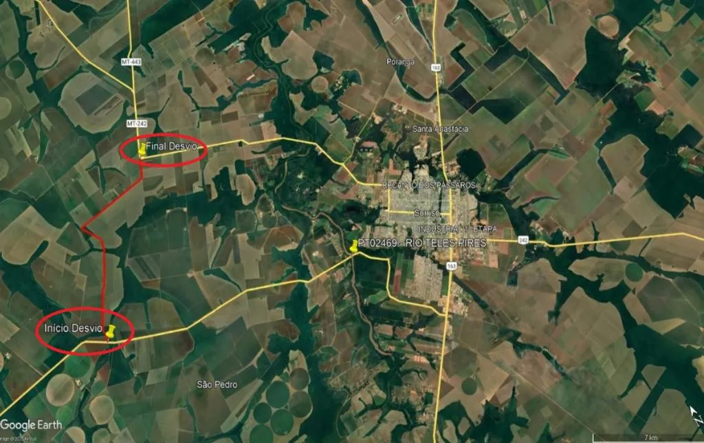 Como alternativa, foi implantado um desvio a cerca de 25 quilômetros do entroncamento com a BR-163. Motoristas que saem de Tapurah em direção a Sorriso devem percorrer um trecho não pavimentado de aproximadamente 14 quilômetros até acessar a MT-242 e seguir viagem normalmente.