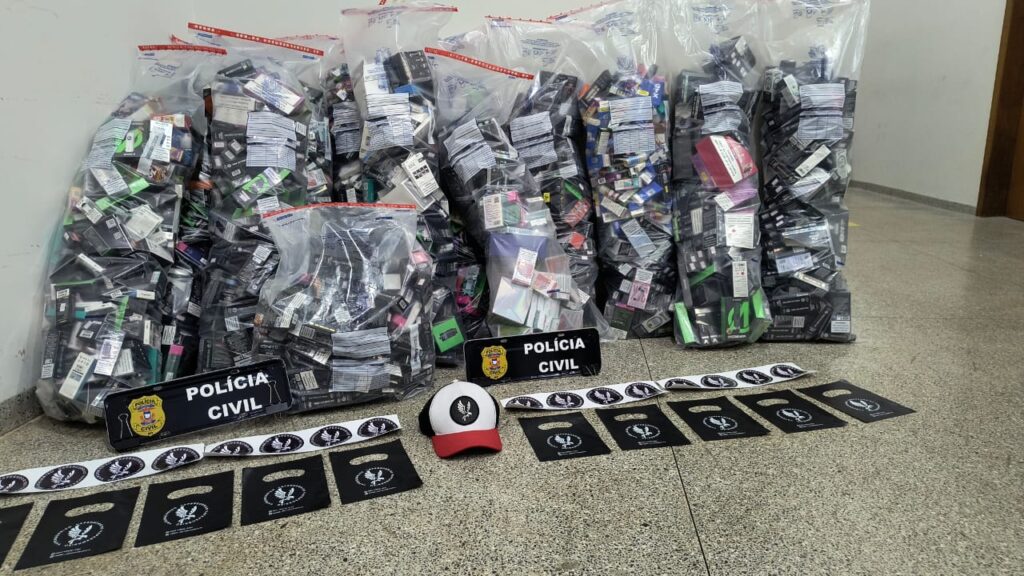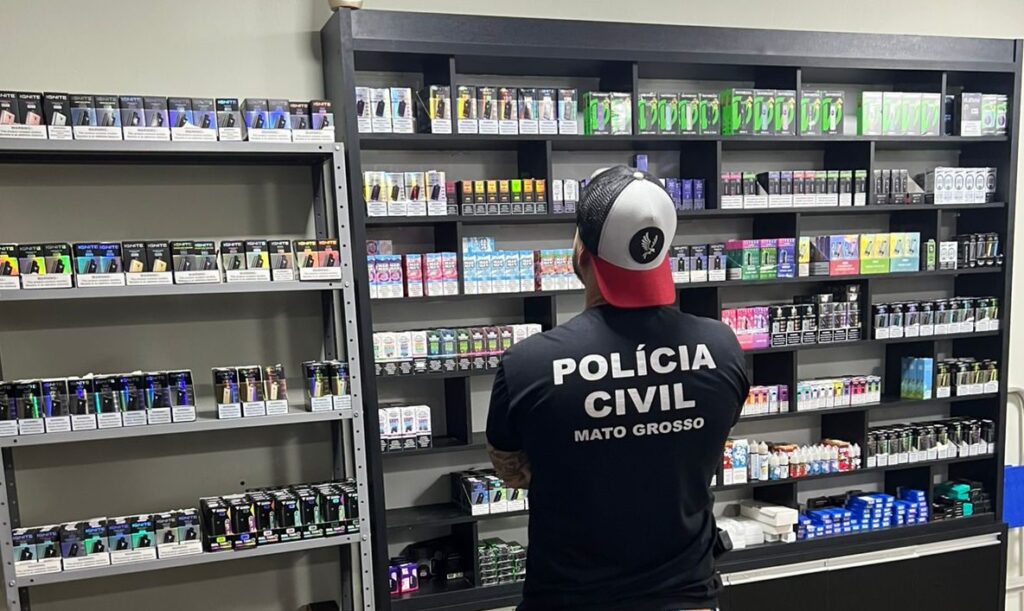 A Polícia Judiciária Civil apreendeu mais de 1.100 cigarros eletrônicos na tarde desta terça-feira (08), durante uma operação em uma loja localizada no município de Sorriso (MT). A ação resultou no fechamento do estabelecimento, que operava exclusivamente com a venda desse tipo de produto, cuja comercialização é proibida no Brasil. O valor estimado da apreensão ultrapassa os R$ 600 mil.