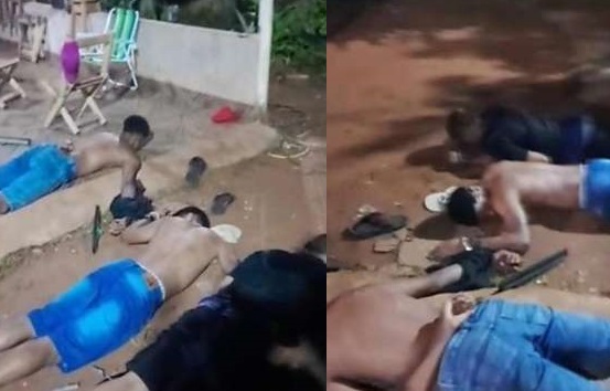 Imagens registradas no local mostram os sete suspeitos já algemados e deitados no chão. Eles foram conduzidos à delegacia da região, onde permanecem à disposição da Justiça.