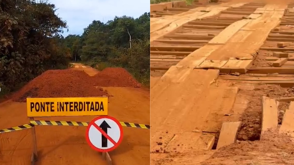 A ponte da rodovia MT-429, que liga os municípios de Cláudia e Marcelândia, foi interditada nesta sexta-feira (20) pela Prefeitura de Cláudia após vistoria técnica apontar risco iminente de colapso estrutural.