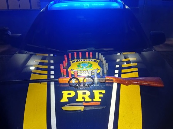 Durante a verificação do automóvel, os policiais localizaram no banco traseiro uma espingarda calibre 12, sem numeração, municiada, além de 24 munições e duas facas. Testemunhas e funcionários da concessionária Nova Rota do Oeste informaram que o motorista apresentava sinais de embriaguez antes de abandonar o local.