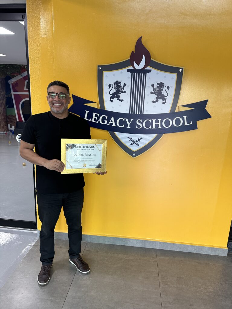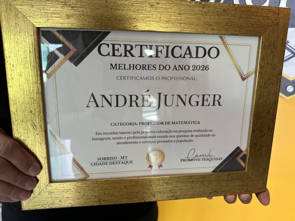 O professor André Junger, docente da Legacy School, foi eleito o melhor professor de Matemática de 2026 em Sorriso, após conquistar a primeira colocação em uma pesquisa de opinião realizada no Instagram pela Promove Pesquisas.