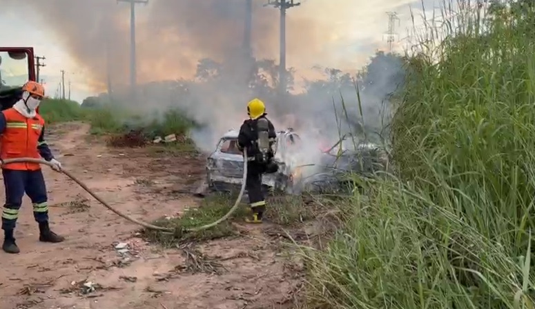 Um veículo foi completamente destruído por um incêndio registrado nesta terça-feira às margens da MT-560, em uma área localizada atrás do bairro Carolina, em Sorriso.