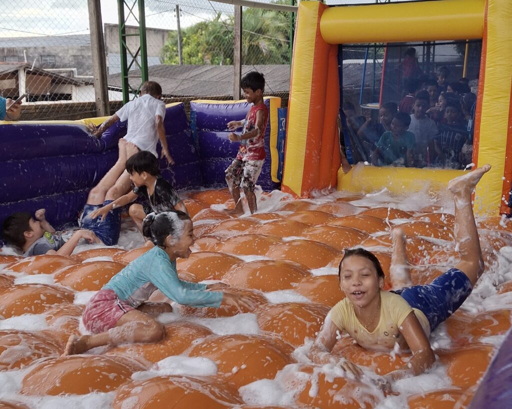 14h30 às 16h – Escorrega na loga / banho de mangueira